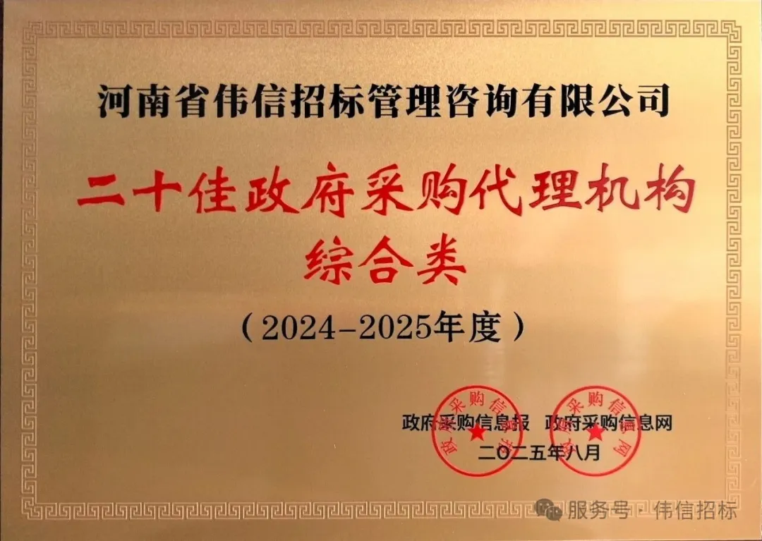 伟信招标 荣获“二十佳政府采购代理机构・综合类” 奖项,彰显行业综合服务硬实力
