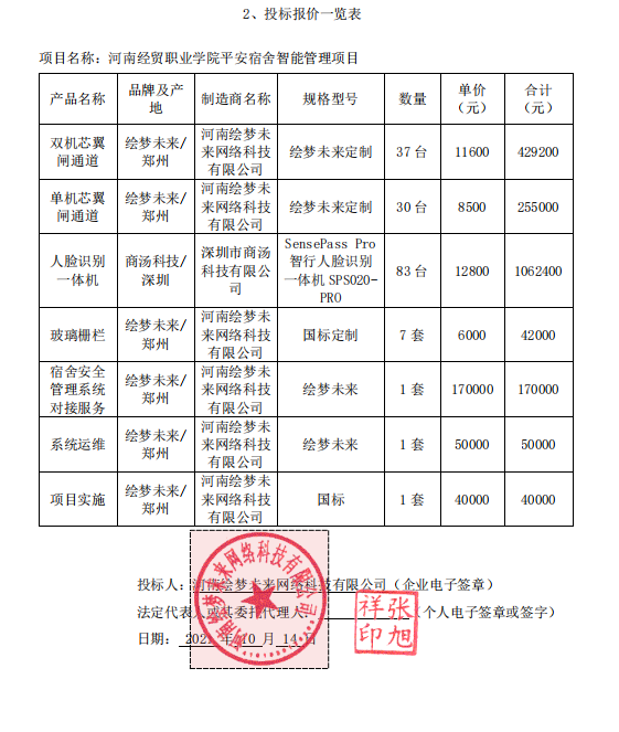 河南经贸职业学院平安宿舍智能管理项目中标公告